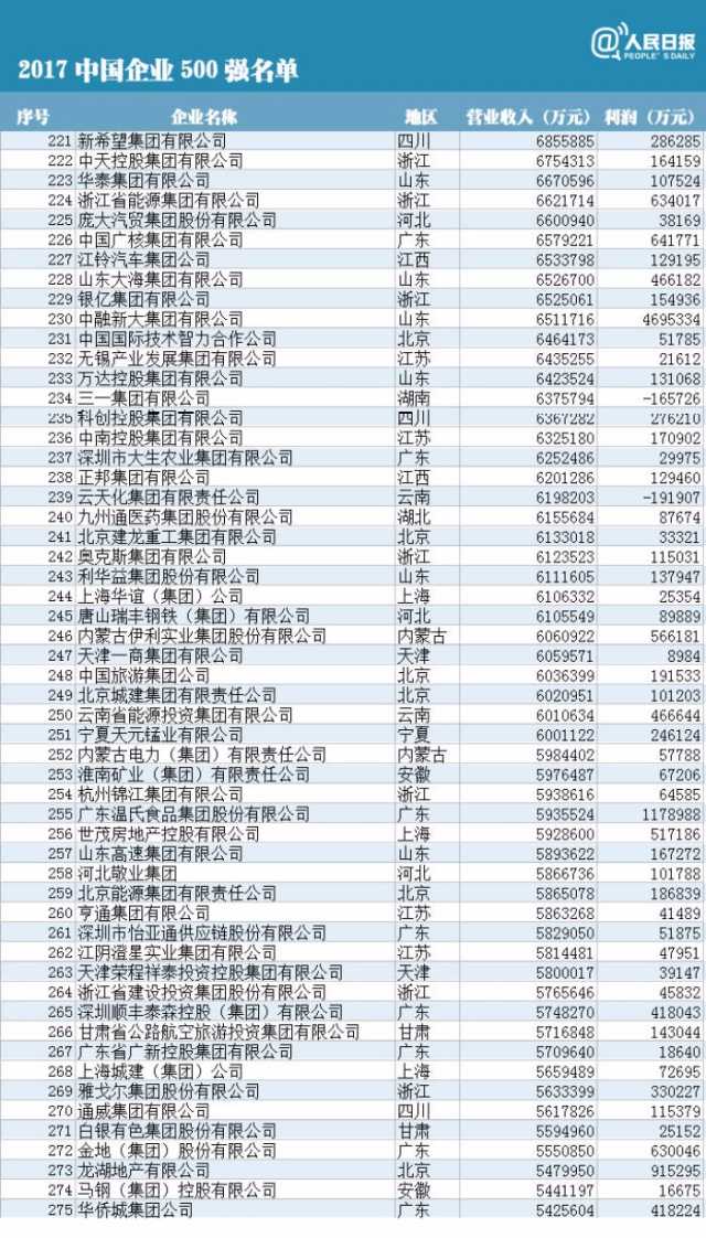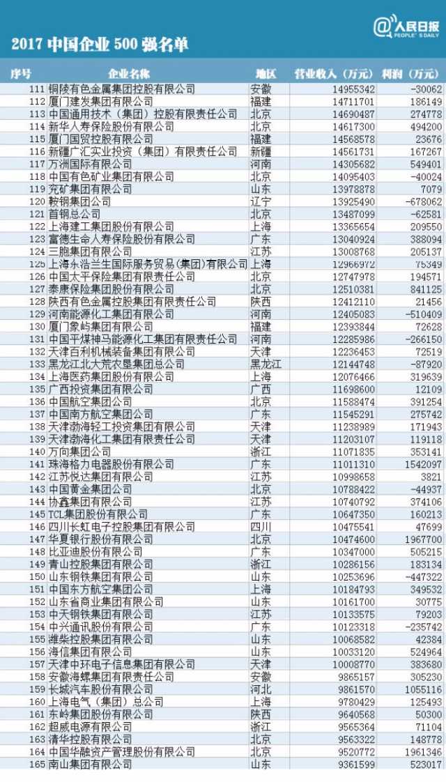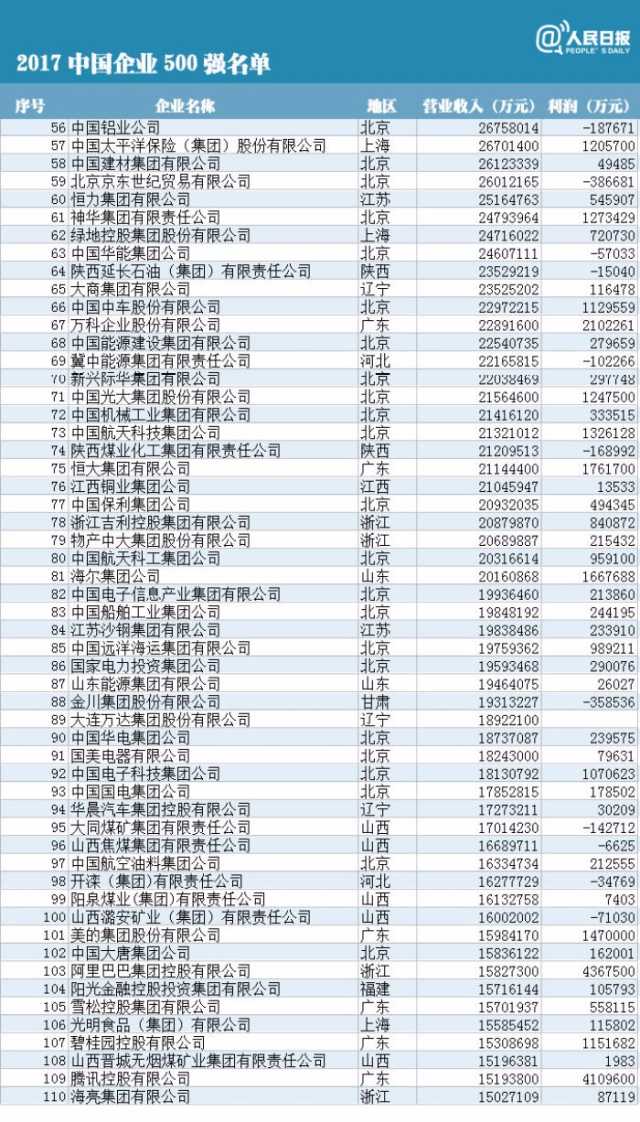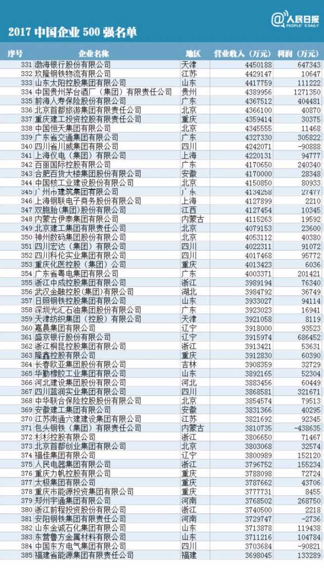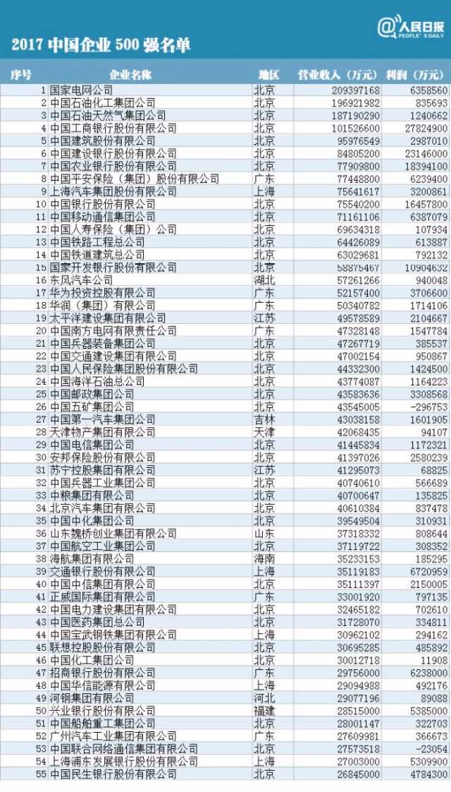 附中國企業(yè)500強榜單(制圖:人民日報微博)