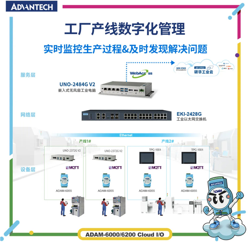 Cloud I/O ADAM-6000/6200模塊可實時采集分布式設備的生產過程數據,以監(jiān)控設備現場個關鍵控制節(jié)點,如溫度、氣體、壓力等,將以上數據信息上傳到統(tǒng)一的數據管理平臺,在云系統(tǒng)中以最大效率、最小時間和成本管理大量高度分布式設備,以保障生產的穩(wěn)定運行。