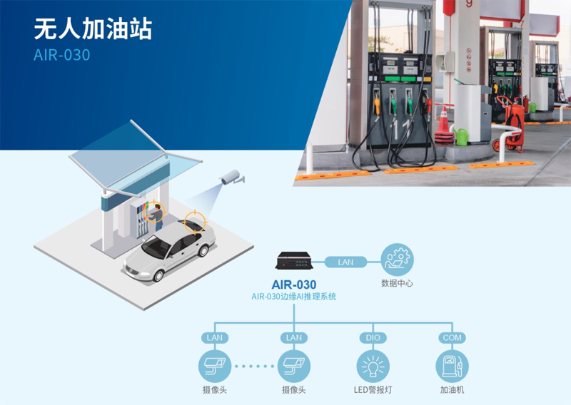 借助研華Edge AI SDK,該品牌SI合作伙伴在項目規(guī)劃期間幫助驗證了AIR-030、AI容器、AI模型和庫的性能,大大節(jié)省了試錯時間。此外,NVIDIA Jetson生態(tài)系統(tǒng)的豐富資源大大減少了開發(fā)時間,同時優(yōu)化了AI應(yīng)用。如此將以最低的成本,將尖端AI技術(shù)順利集成到其AI軟件中。AIR-030緊湊的尺寸可適應(yīng)幾乎任何加油站的設(shè)計,其豐富的接口選項集,包括PoE、LAN和USB,可輕松連接各種類型的攝像頭。經(jīng)COM端口將加油機和監(jiān)控系統(tǒng)集成到AIR-030中,該品牌方可在燃油噴嘴拾取和返回時執(zhí)行AI分析,同時還可監(jiān)控安全隱患,如吸煙或燃油噴嘴使用不當(dāng)?shù)那闆r。檢測到危險事件后,燃油供應(yīng)會自動暫停,連接到AIR-030的警報LED也會亮起,提醒駕駛員注意。
