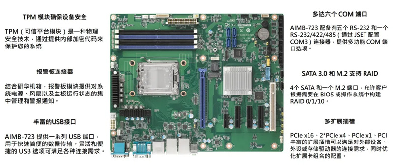 AIMB-723的推出,為制造設備供應商及電子產品制造商帶來了巨大的便利與效率,賦能企業在PCB與IC的生產過程中,無縫集成AOI技術,通過高精度相機對電路板進行全方位掃描,精準識別并報告任何潛在缺陷或故障。這一能力對于實時監控生產質量、即時糾錯,確保產品符合最高標準至關重要,是在當前競爭激烈的制造業環境中贏得市場先機的關鍵所在。
