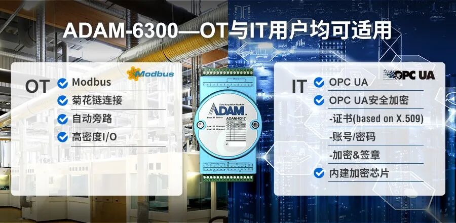 此外,研華ADAM-6300 I/O 模塊在原本I/O基礎上強勢升級,支持菊花鏈連接、支持自動旁路且配備高密度I/O,還支持OPC UA安全加密,內建加密芯片,既適用于OT使用者,也適用于IT使用者。