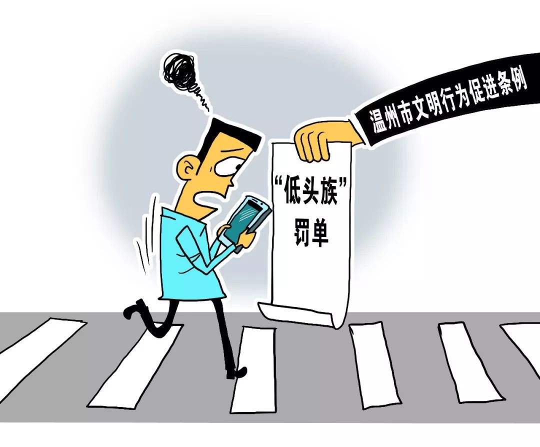 據報道,溫州市在2019年元旦開始實施的《溫州市文明行為促進條例》,明確規定,對于行人通過路口或者橫穿道路時低頭看手機、嬉戲等行為要重點整治,違反該規定的會受到警告或十元罰款。