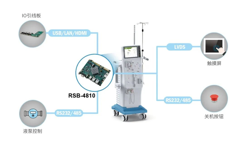 以往血液透析機市場主要由國際品牌所占據,但是近幾年來隨著國內高速發展,國內也涌現出制造血液透析機的優秀企業。國內某大型醫療企業,進行?“人工腎”血液透析機系統研發時,其技術難點在于保證產品的可靠性和長壽命,經過客戶深入研究和多次選型,最終選擇了研華工業級品質的RSB-4810 Arm-based單板電腦作為其設備的主控單元,該主控解決方案同時提供強大的技術支持、全面的技術文件和良好的售后服務。