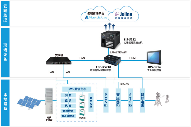 研華具備強大的軟硬整合能力,基于研華標準物聯網Jelina平臺進一步延伸定制了適用于新能源行業的能源Jelina方案,該方案能幫助客戶高效部署,實時云端管理設備狀態,涵蓋了災難恢復、遠程監控、無人值守等功能,幫助解決行業痛點,確保儲能系統長期穩定運行。此外,作為微軟合作伙伴,研華提供靈活安全的Azure云服務,幫助儲能邊緣端設備數據無縫上云,實現安全、敏捷、高可用、低時延、隱私保護的大數據和人工智能服務與應用。