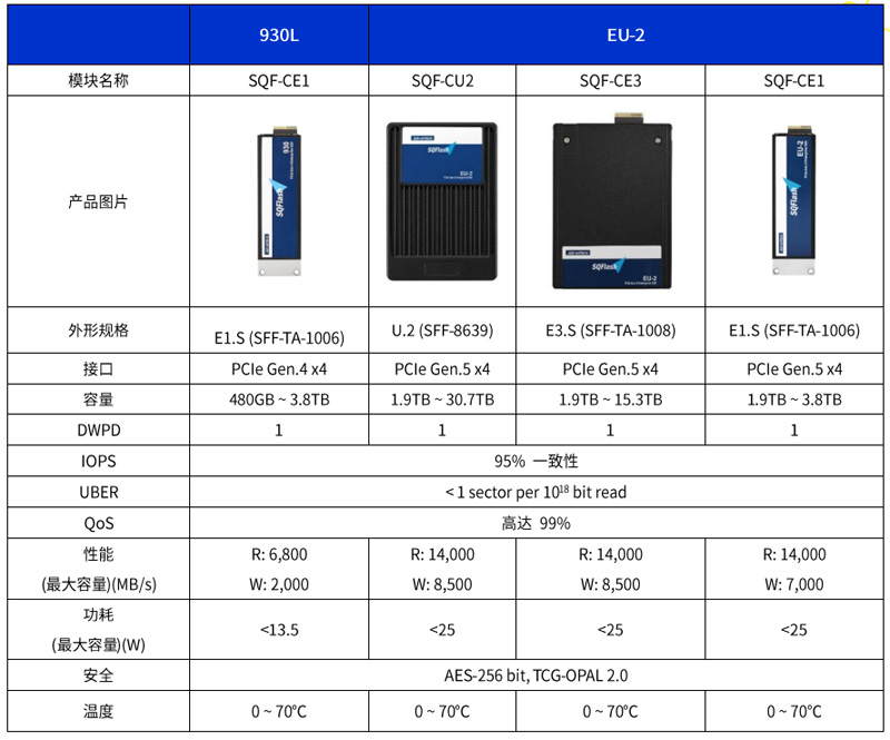 EDSFF SQFlash EU-2 U.2 & E3.S SSD是新一代高性能存儲解決方案,旨在滿足超大規模、企業和數據密集型應用的需求。